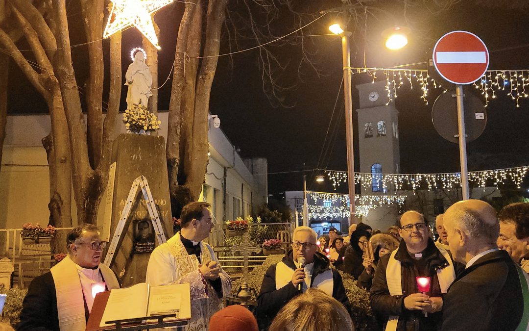 Al termine della Solennità dell’Immacolata, lo scorso 8 Dicembre si è tenuta una fiaccolata interparrocchiale, con i fedeli delle varie parrocchie che si sono ritrovati presso la Statua della Vergine, posta accanto all’Asilo Comunale. Lì, dopo la deposizione di una corona di fiori, da parte del Primo Cittadino, i parroci hanno guidato l’Atto di Affidamento della Città alla Vergine, seguito dal canto popolare del Tota Pulchra.